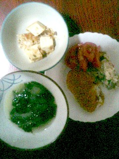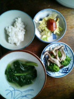 【夕食】ほうれん草、マエタケ。納豆、ご飯