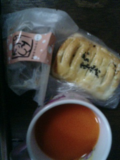 【間食】あられせんべい、饅頭(半分)、コーヒー